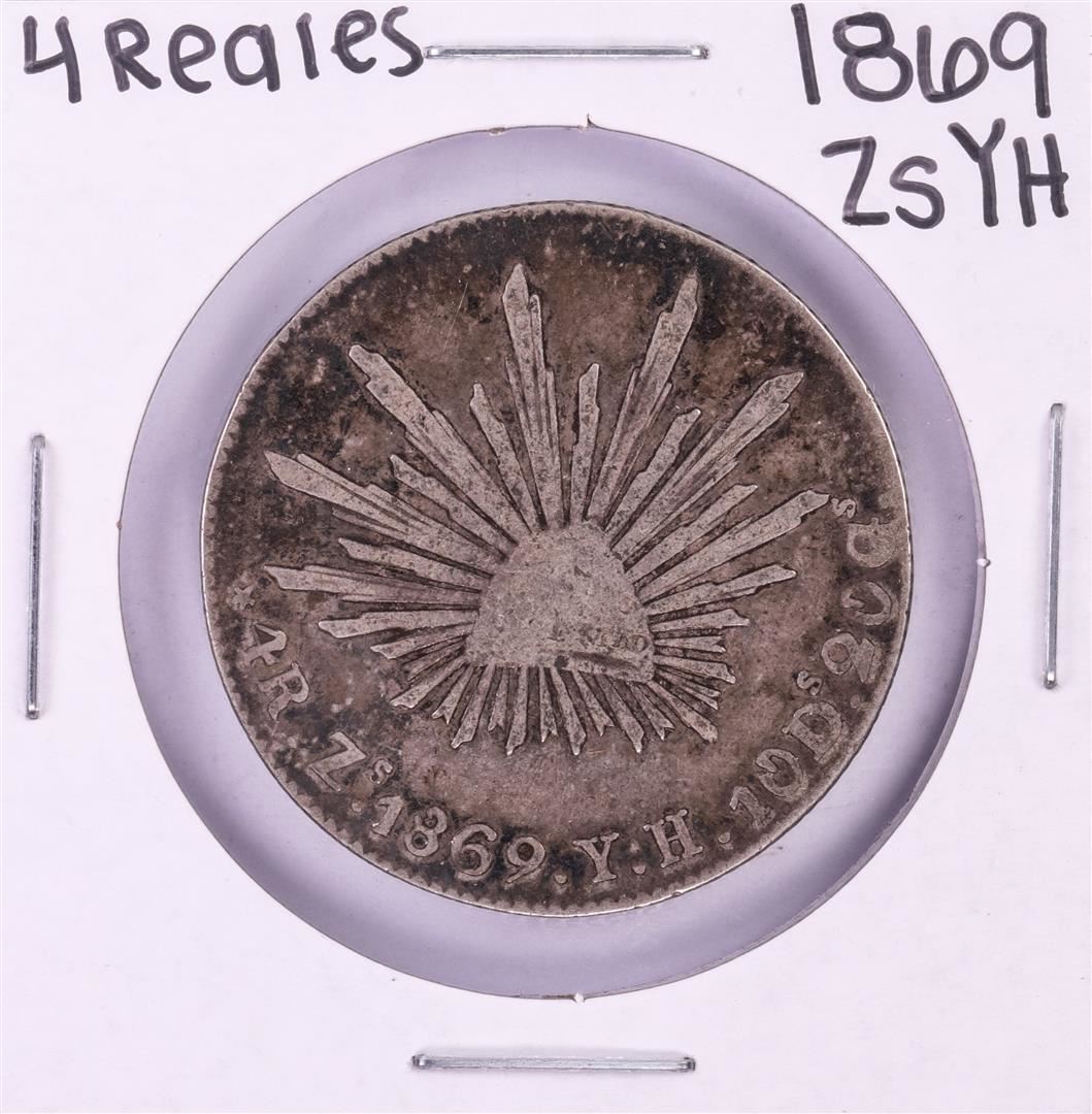 One 1869 ZsYH Mexico 4 Reales Silver Coin.