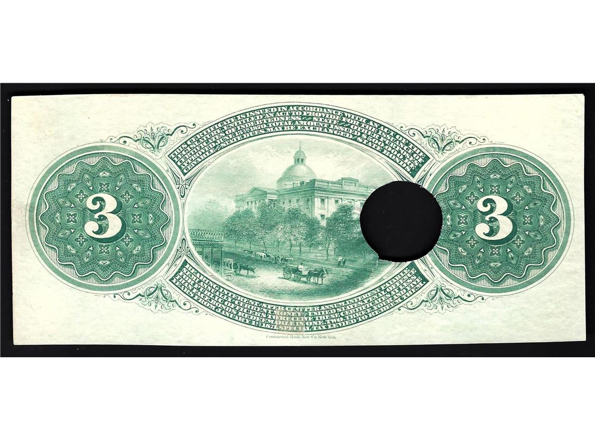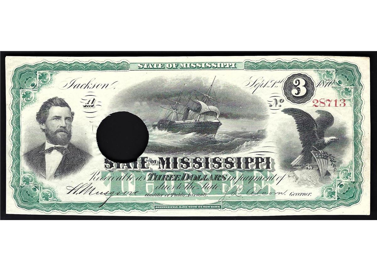 One 1870 $3 State of Mississippi Obsolete Bank Note.