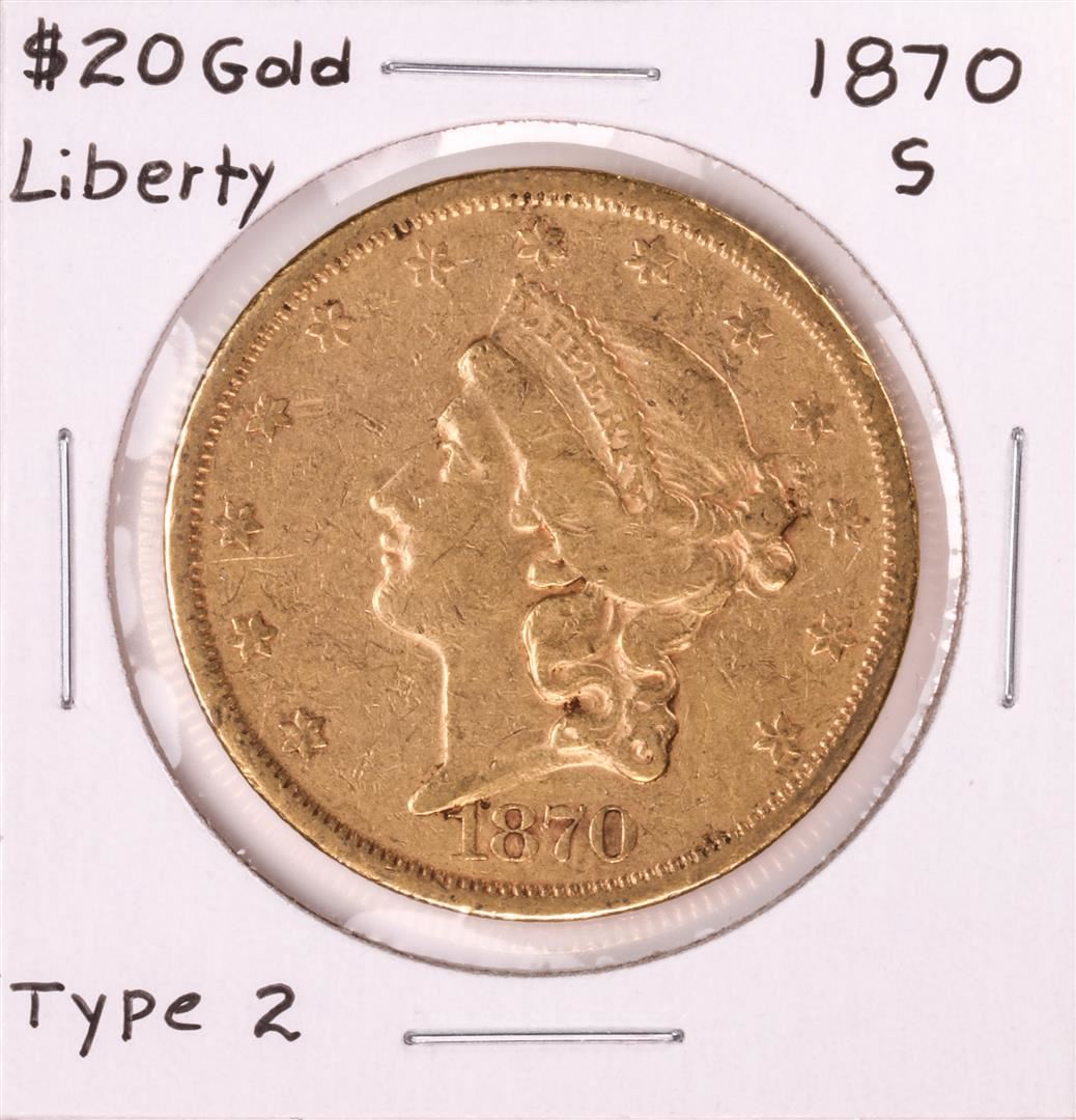One 1870-S Type 2 $20 Liberty Head Double Eagle Gold Coin.