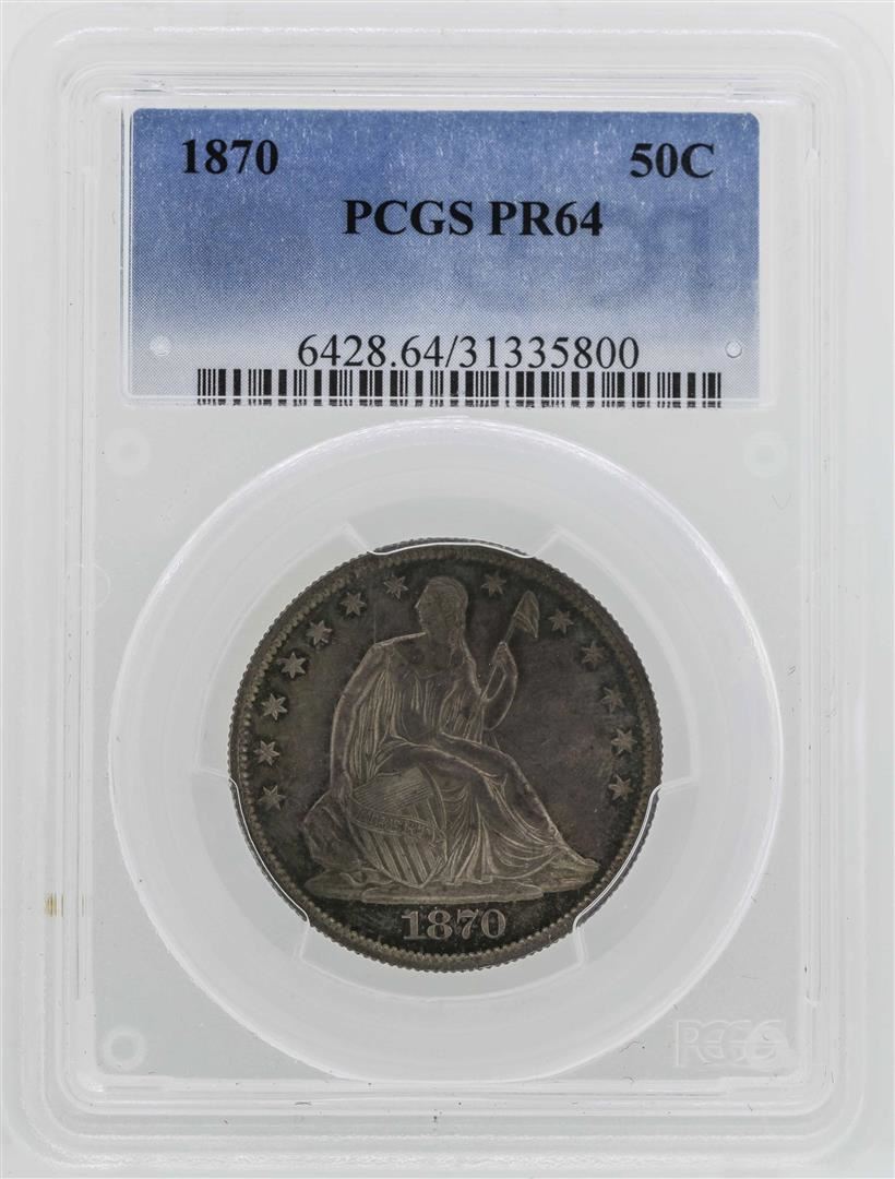 One 1870 Seated Liberty Half Dollar Proof Coin PCGS PR64. PCGS Graded.