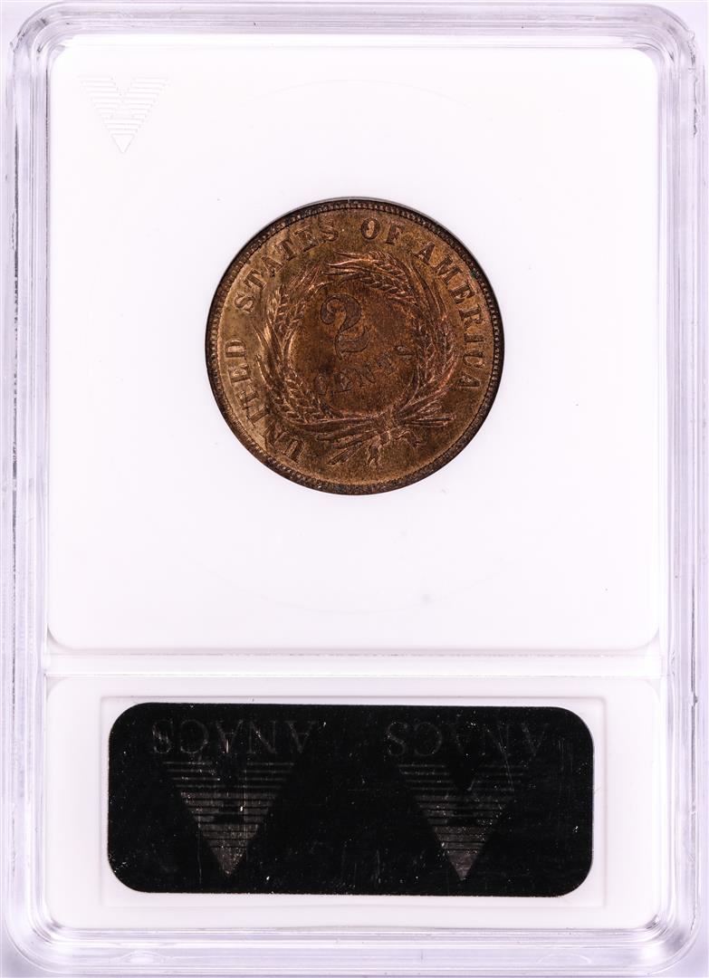 One 1870 Shield Two Cent Piece Coin ANACS MS63RB. ANACS Certified.