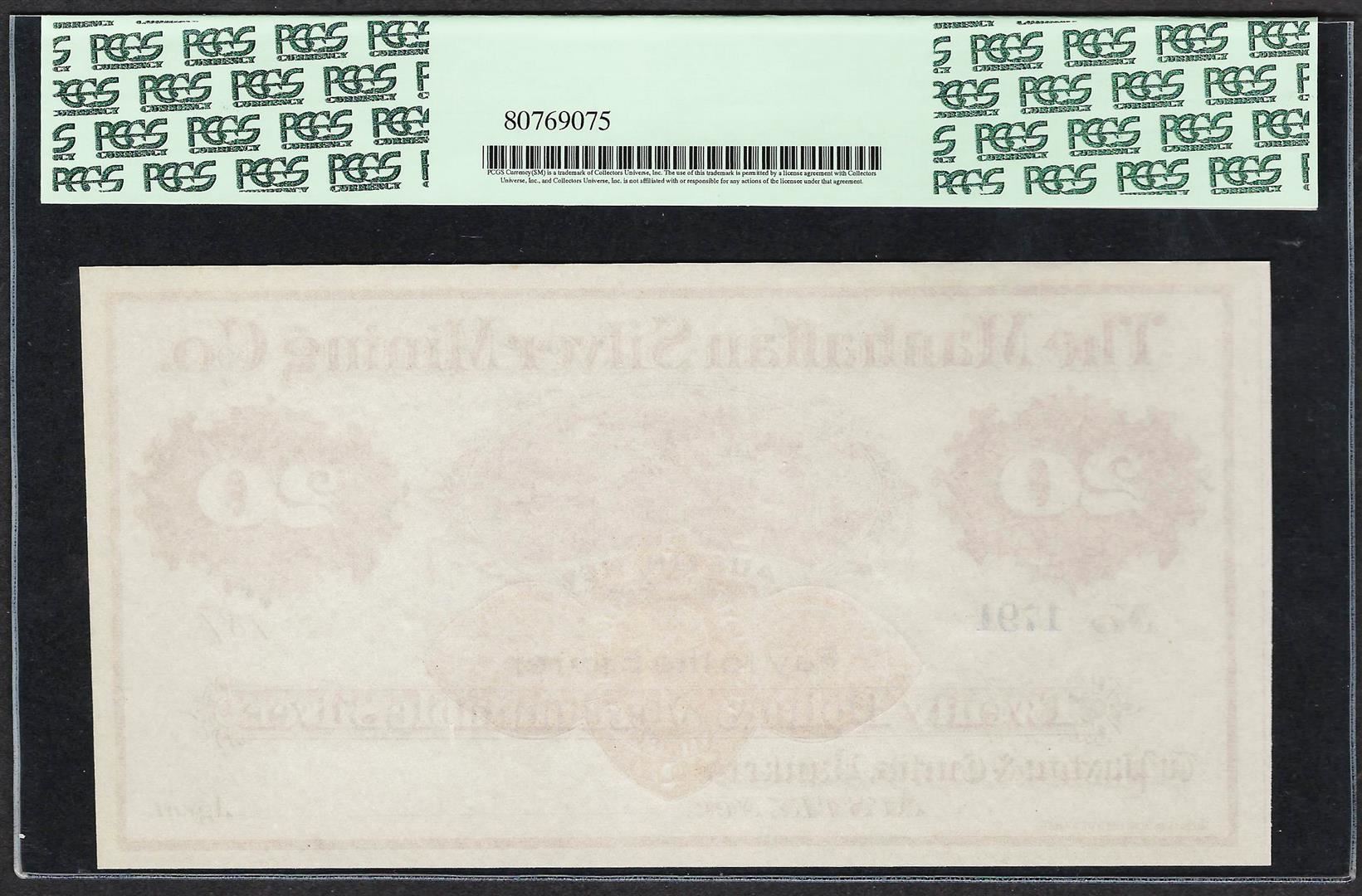 1870's $20 Manhattan Silver Mining Co. Obsolete Note PCGS Gem New 66PPQ