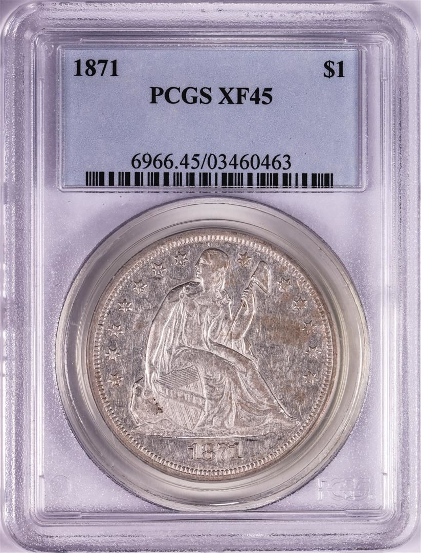 One 1871 $1 Seated Liberty Silver Dollar Coin PCGS XF45. PCGS Graded.