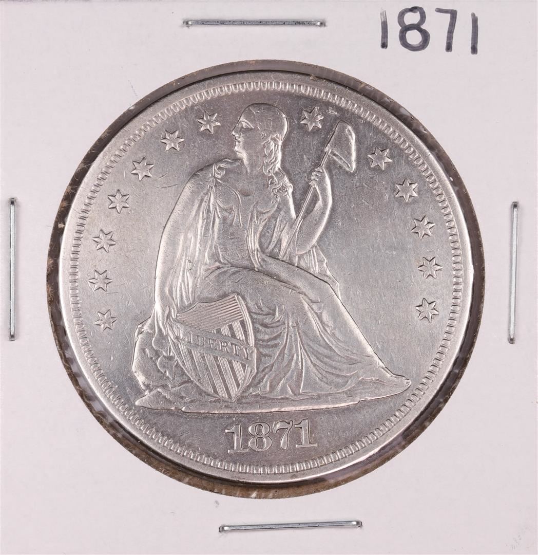 One 1871 $1 Seated Liberty Silver Dollar Coin.