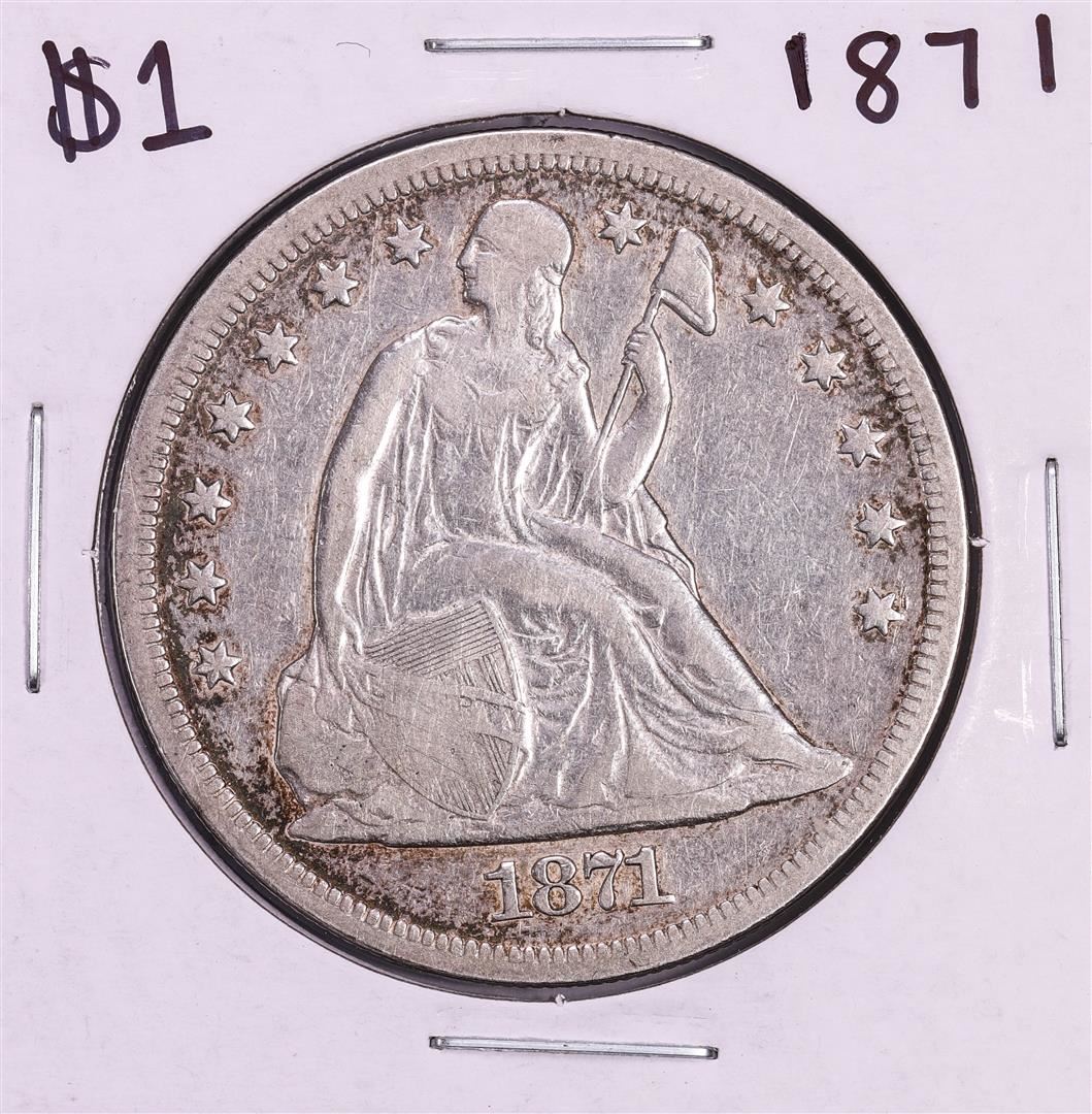 One 1871 $1 Seated Liberty Silver Dollar Coin.