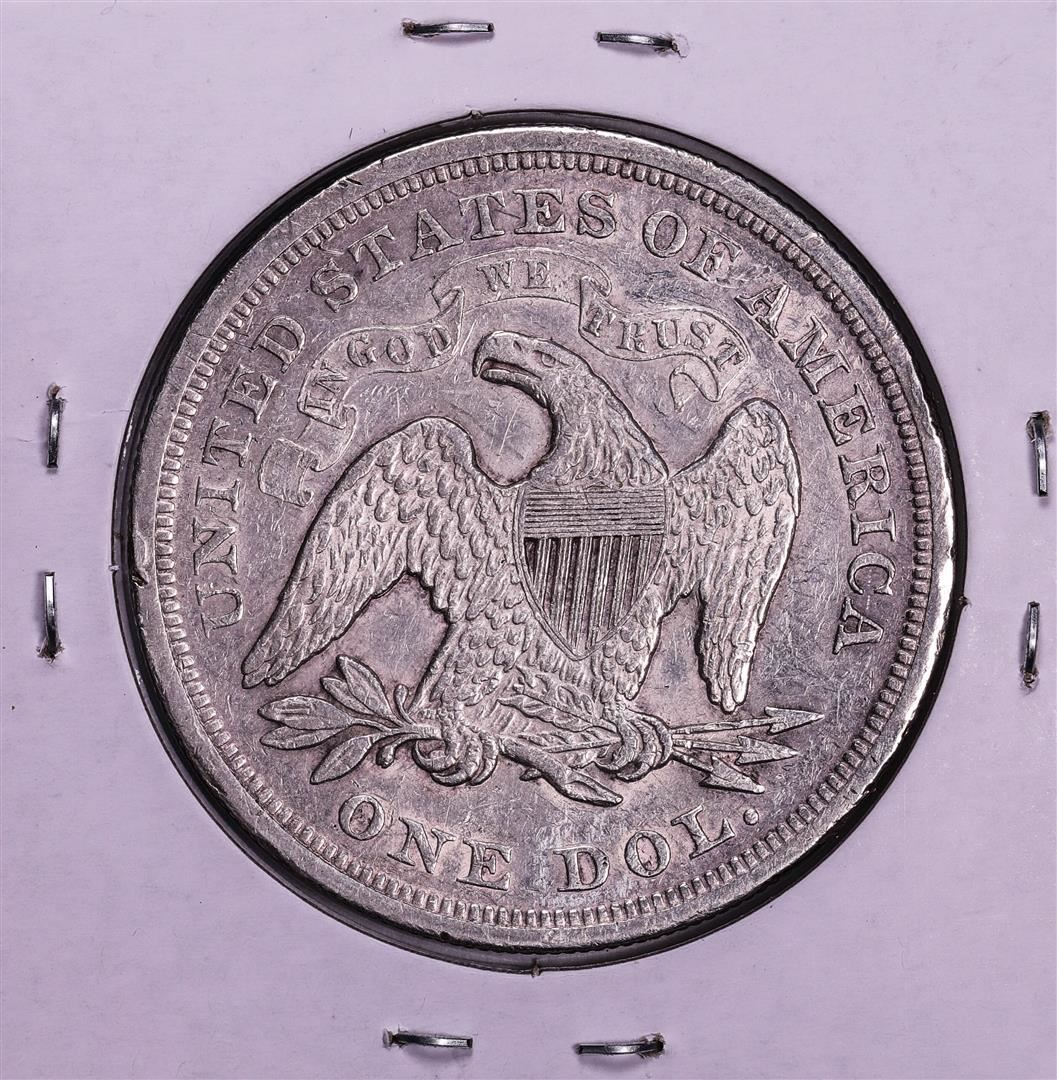 One 1871 $1 Seated Liberty Silver Dollar Coin.