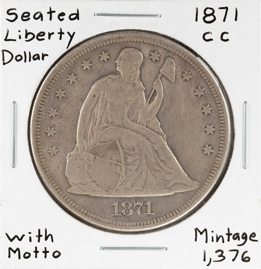 One 1871-CC with Motto $1 Seated Liberty Silver Dollar Coin.