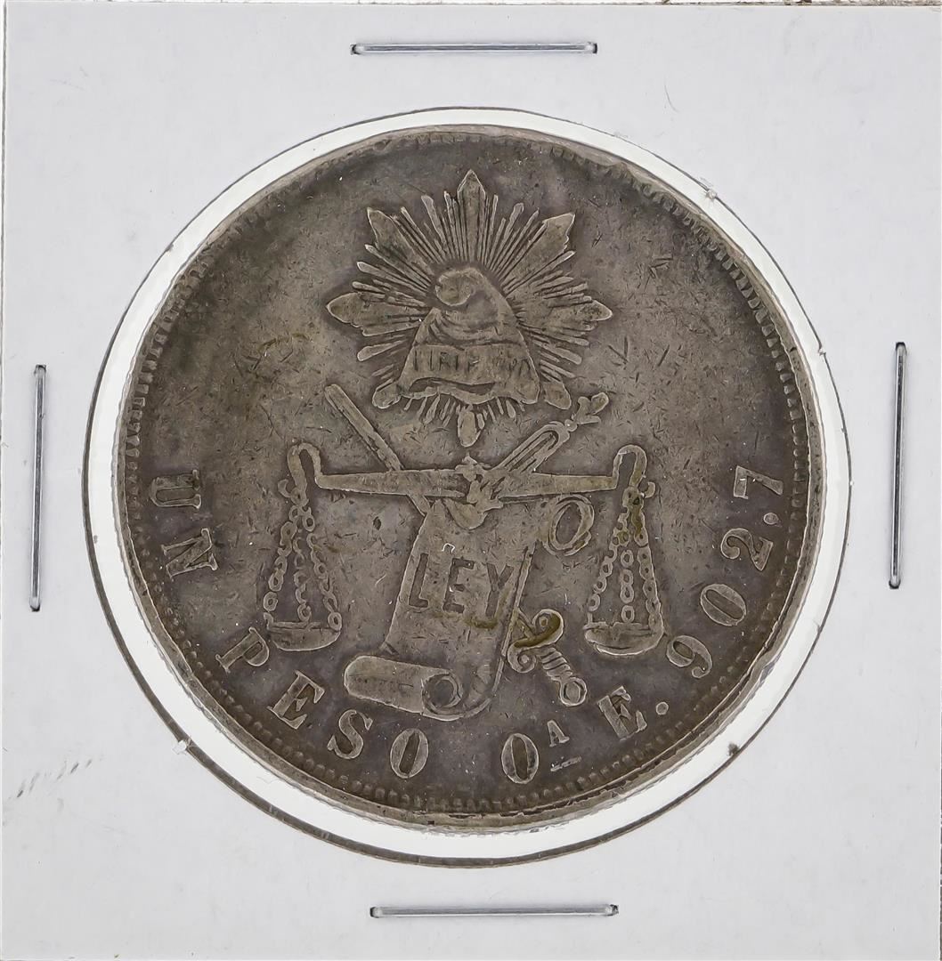 One 1871 OaE Mexico Un Peso Silver Coin.