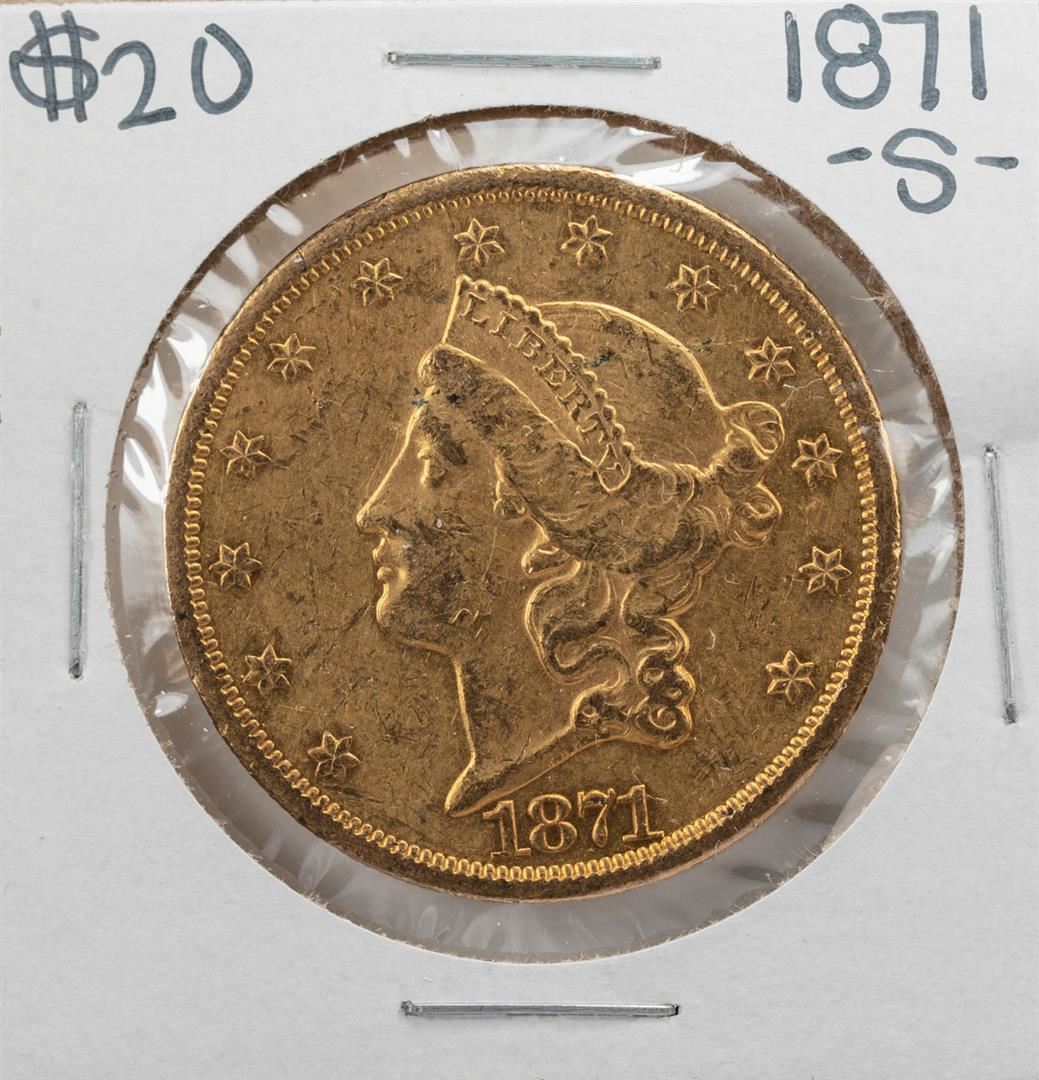 One 1871-S $20 Liberty Head Double Eagle Gold Coin.