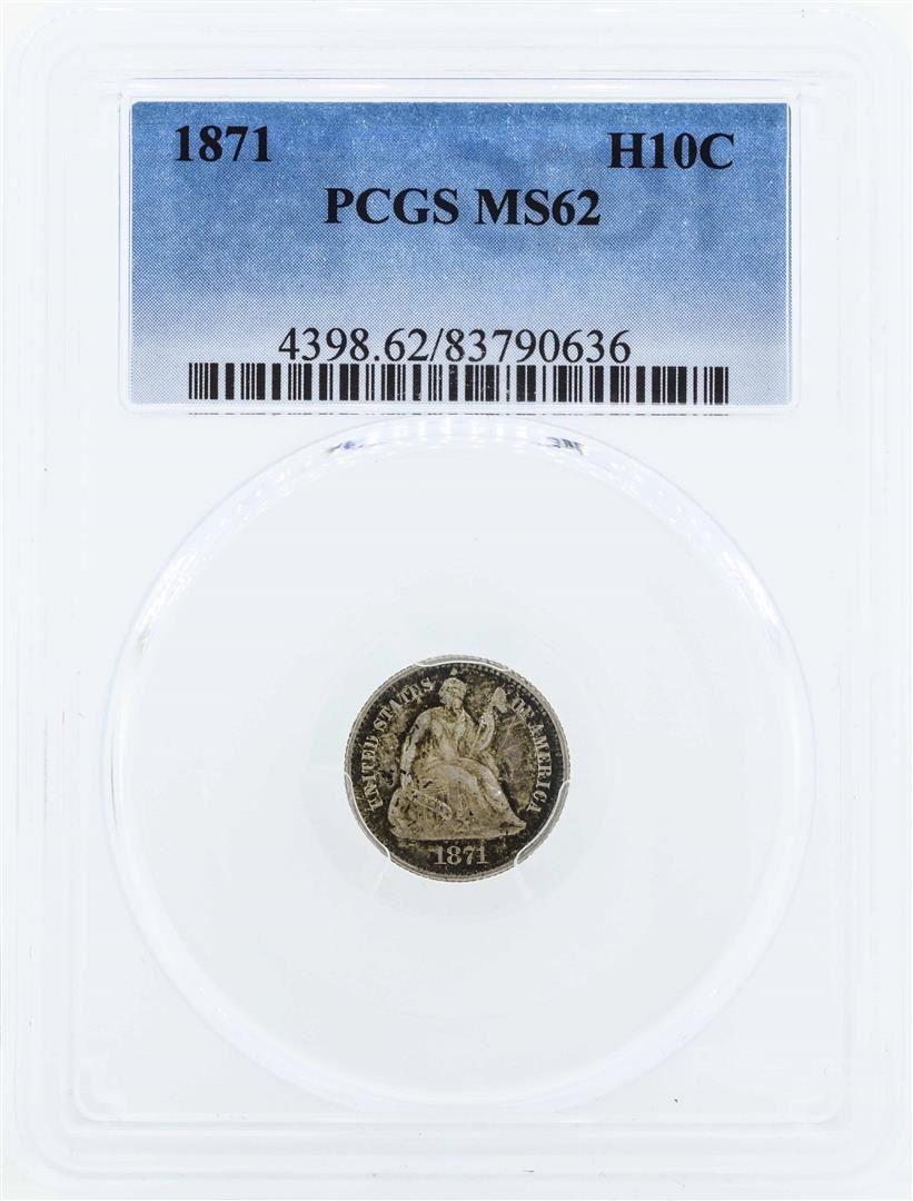 One 1871 Seated Liberty Half Dime Coin PCGS MS62. PCGS Graded.
