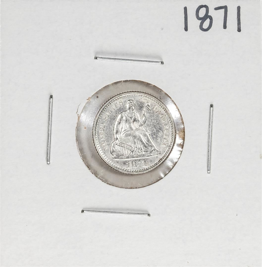 One 1871 Seated Liberty Half Dime Coin.