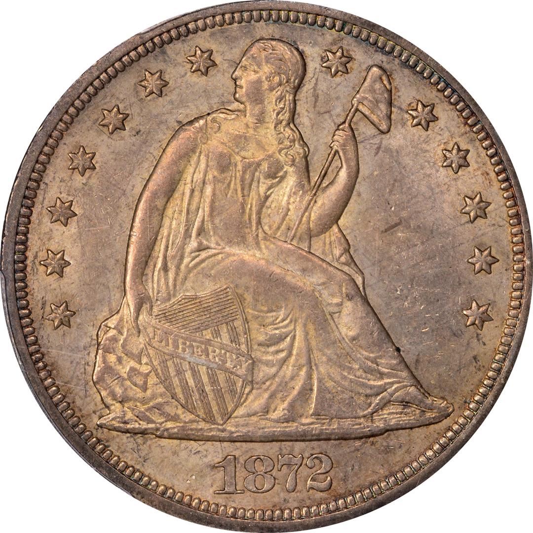 One 1872 $1 Seated Liberty Silver Dollar Coin PCGS MS64. PCGS Graded.
