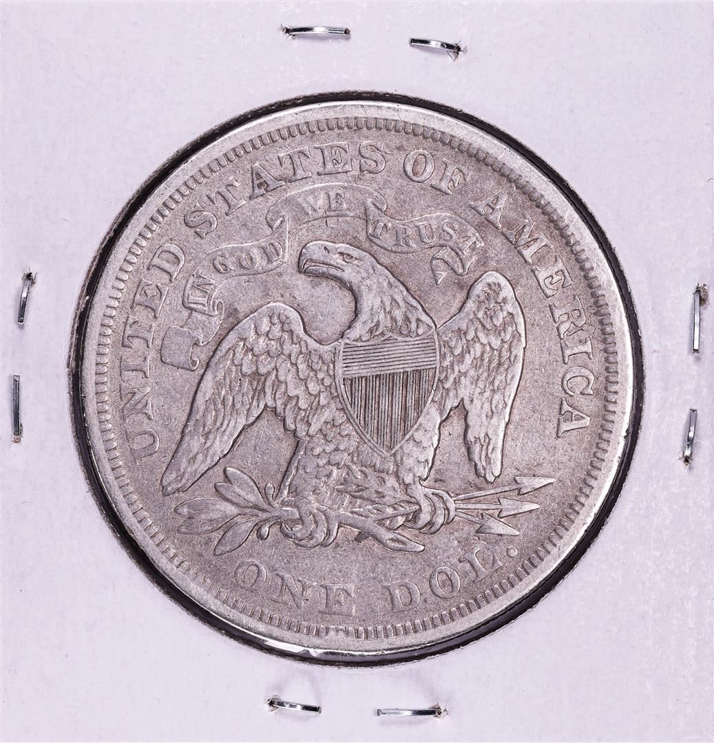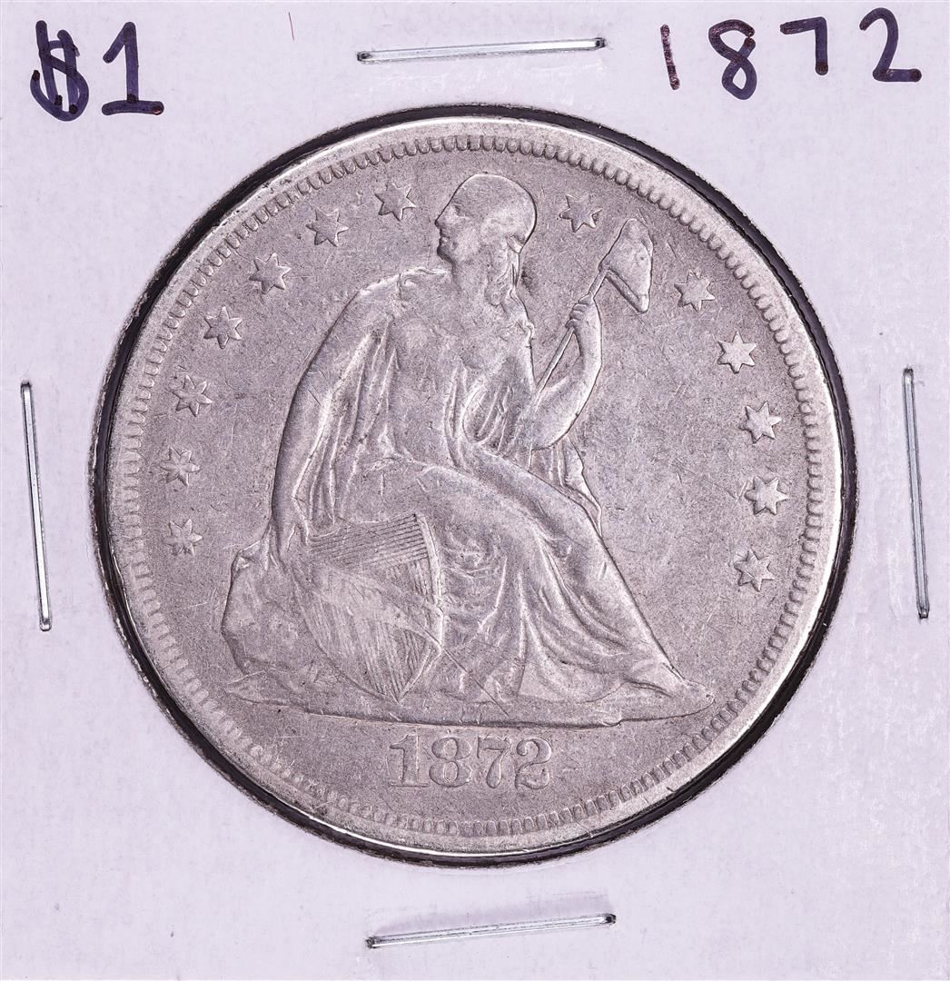One 1872 $1 Seated Liberty Silver Dollar Coin.