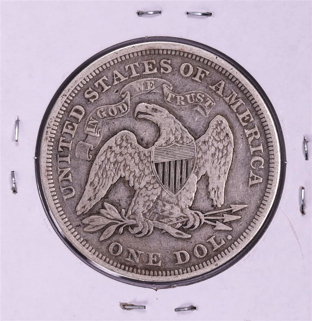 One 1872 $1 Seated Liberty Silver Dollar Coin.