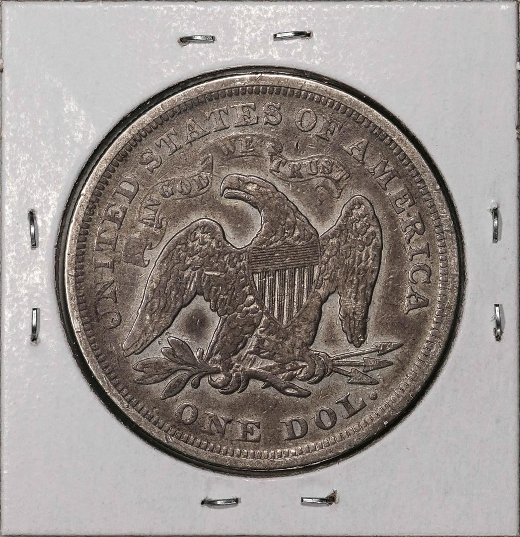 One 1872 $1 Seated Liberty Silver Dollar Coin.
