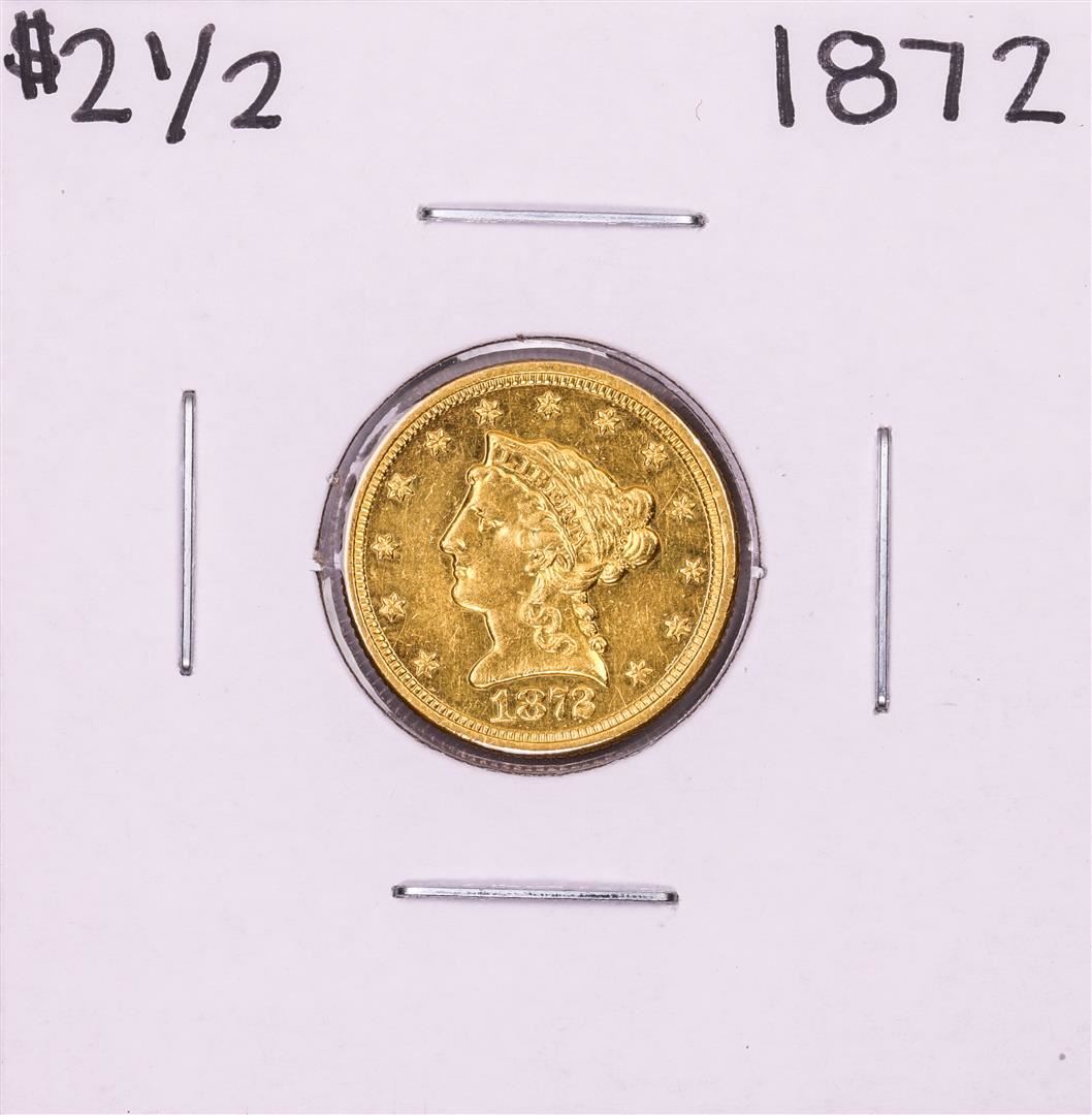 One 1872 $2 1/2 Liberty Head Quarter Eagle Coin.