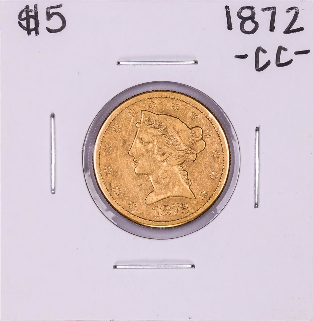 One 1872-CC $5 Liberty Head Half Eagle Gold Coin.