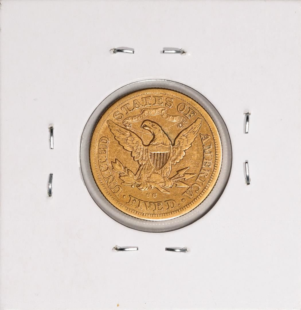 One 1872-CC $5 Liberty Head Half Eagle Gold Coin.