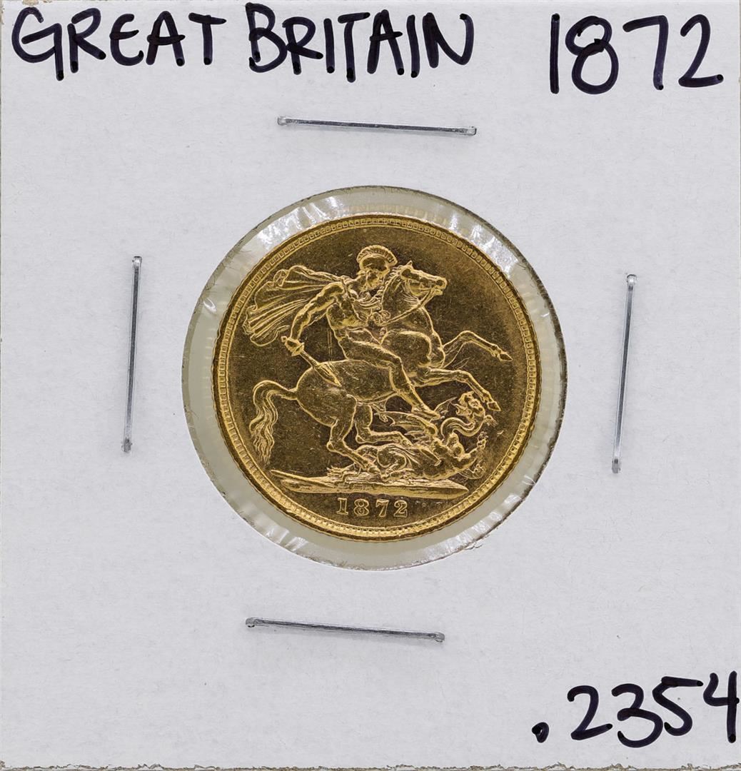 One 1872 Great Britain Queen Victoria Sovereign Gold Coin.