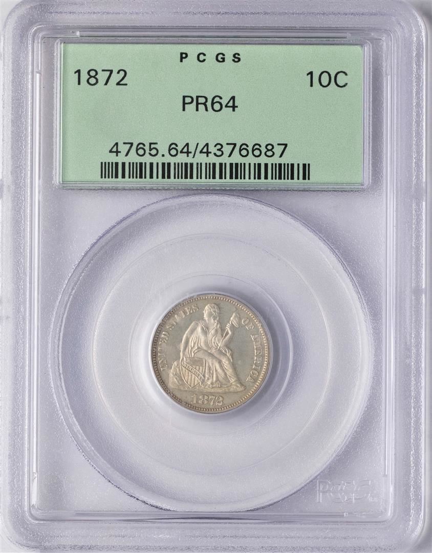 1872 Proof Seated Liberty Dime Coin PCGS PR64
