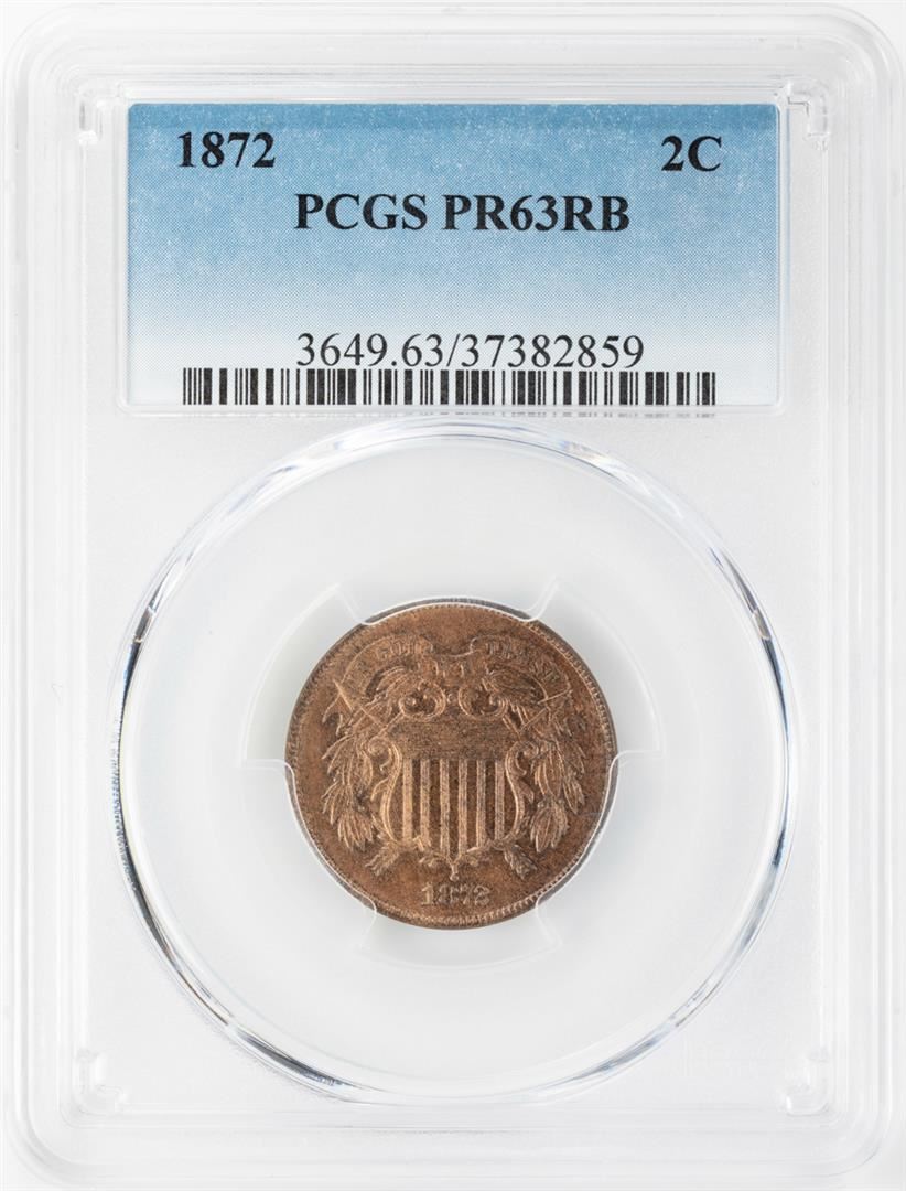 One 1872 Proof Two Cent Piece Coin PCGS PR63RB. PCGS Graded.