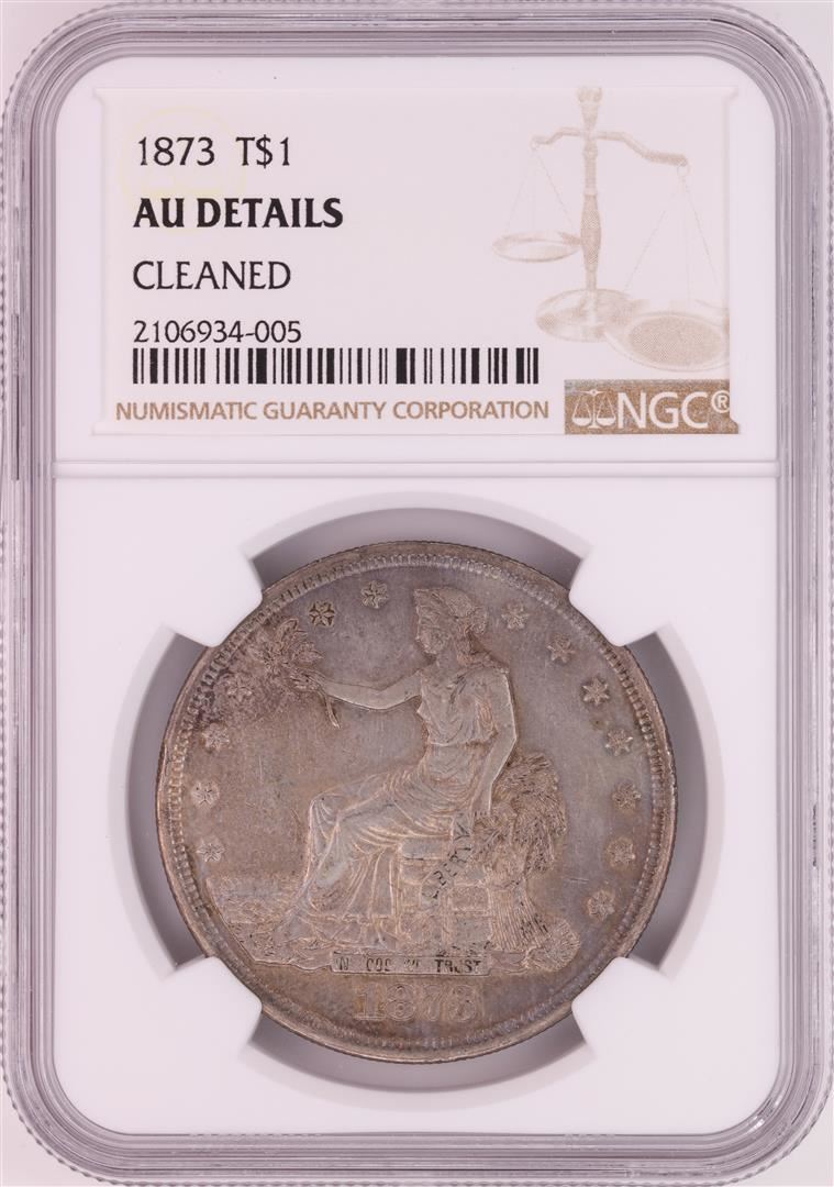 One 1873 $1 Silver Trade Dollar Coin NGC AU Details. NGC Certified.