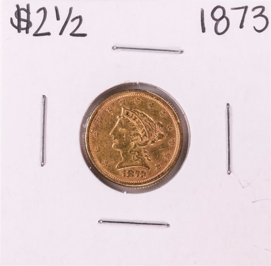 One 1873 $2 1/2 Liberty Head Quarter Eagle Gold Coin.