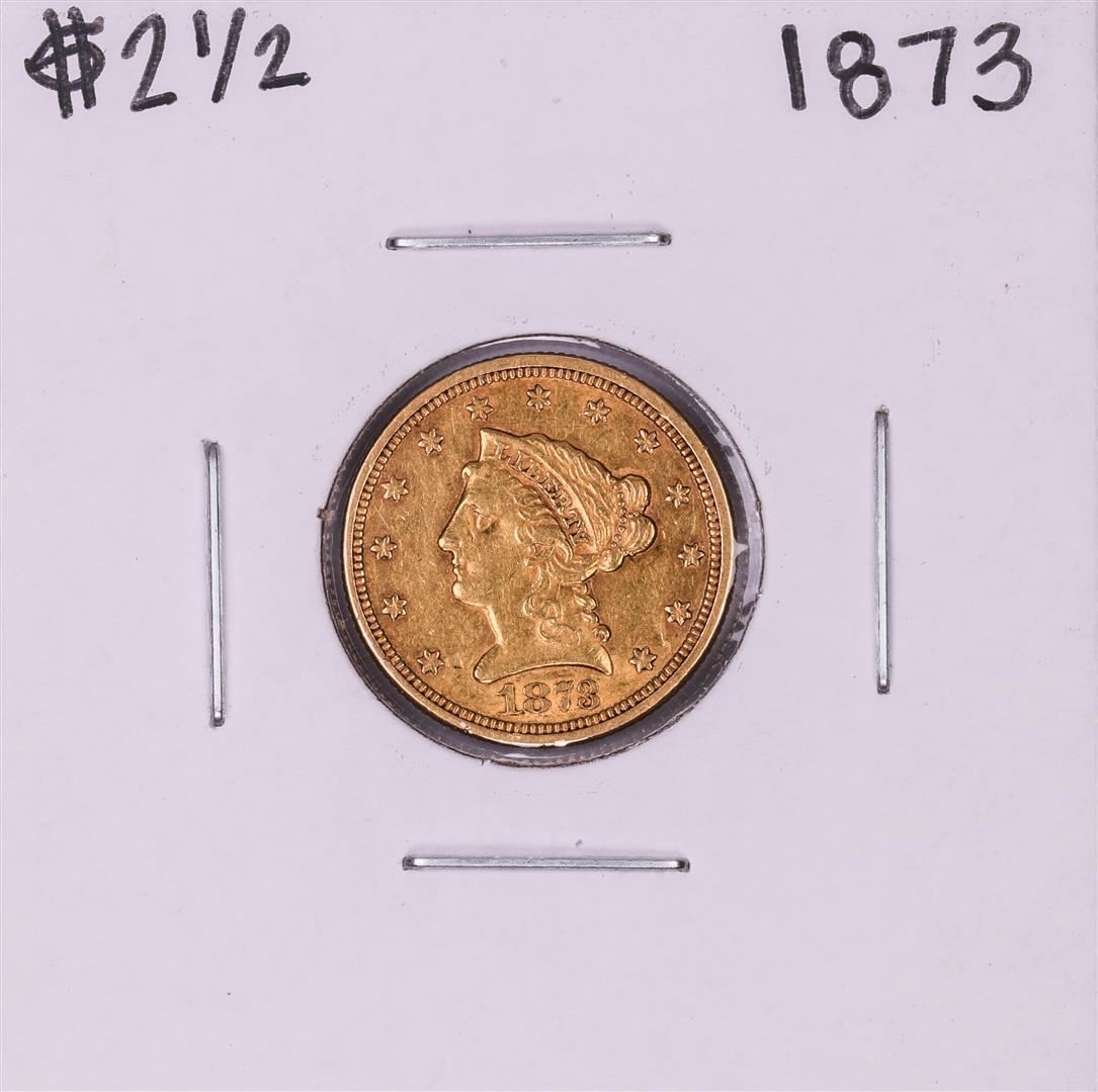 One 1873 $2 1/2 Liberty Head Quarter Eagle Gold Coin.