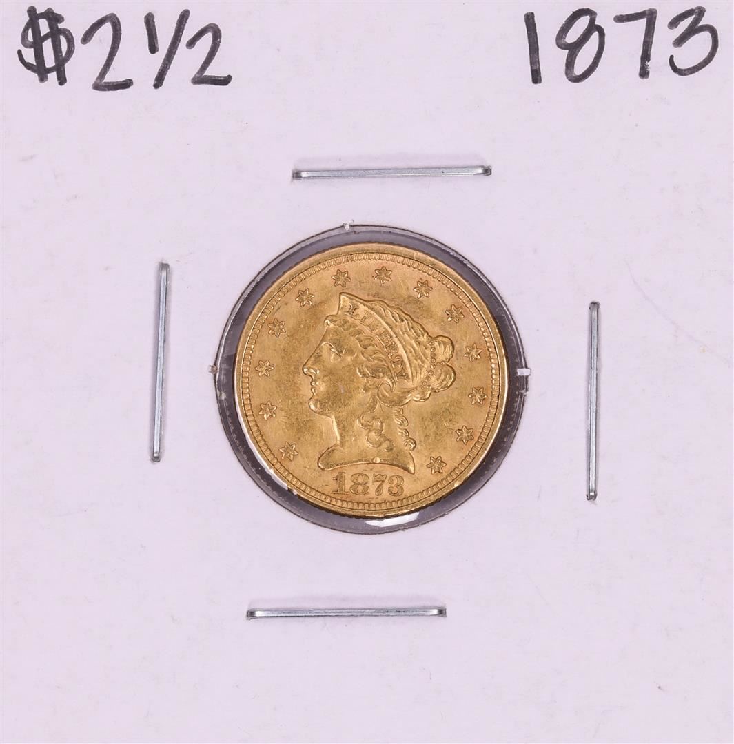 One 1873 $2 1/2 Liberty Head Quarter Eagle Gold Coin.