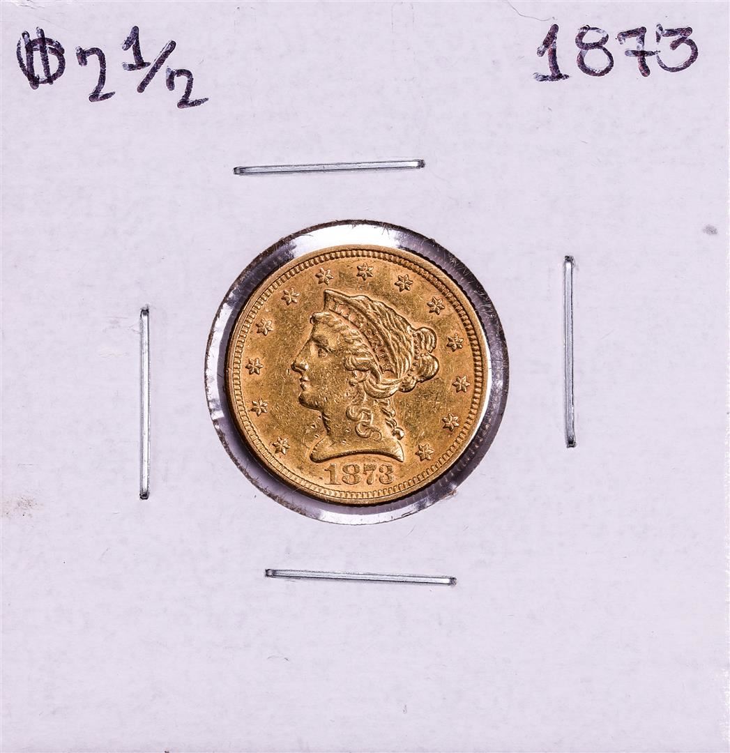 One 1873 $2 1/2 Liberty Head Quarter Eagle Gold Coin.