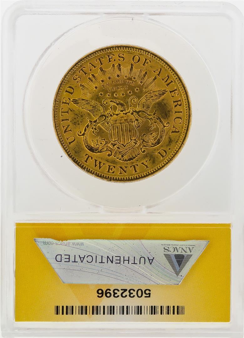One 1873 $20 Liberty Head Double Eagle Gold Coin ANACS MS61 Open 3. ANACS Certified.