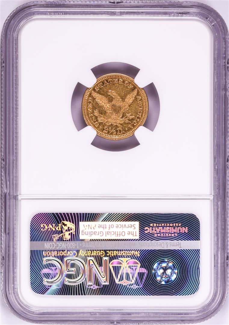 One 1873 Closed 3 $2 1/2 Liberty Head Quarter Eagle Gold Coin NGC AU55. NGC Certified.