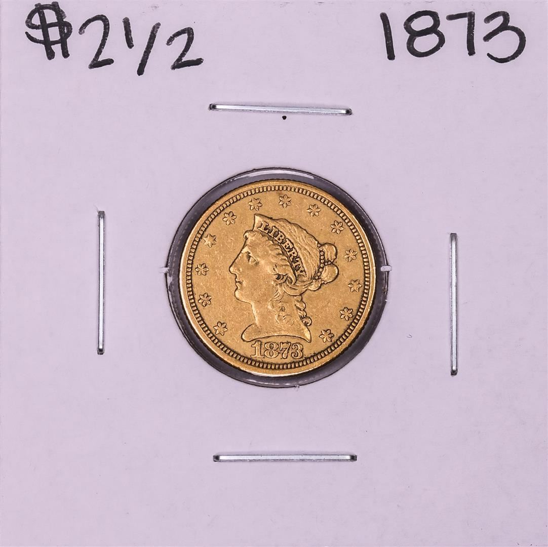 One 1873 Closed 3 $2 1/2 Liberty Head Quarter Eagle Gold Coin.
