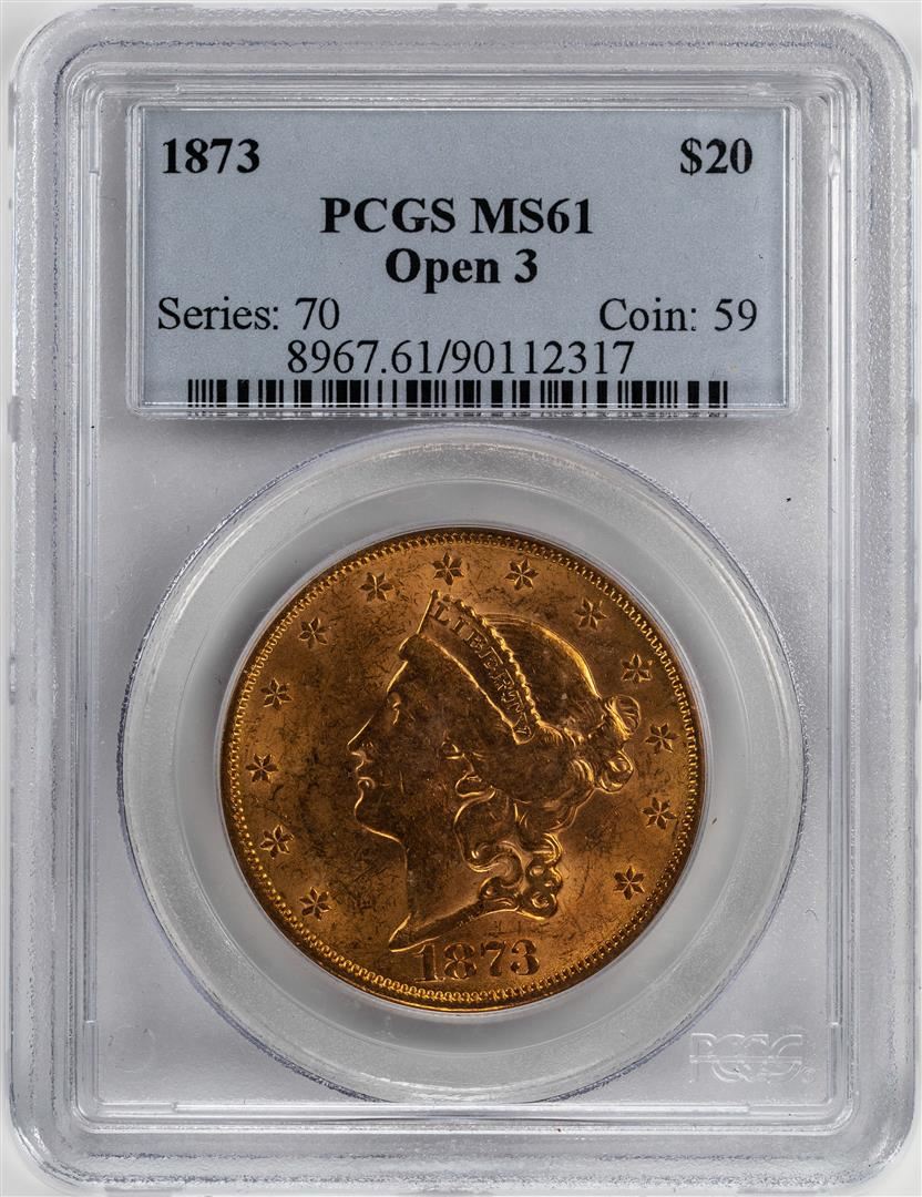 One 1873 Open 3 $20 Liberty Head Double Eagle Gold Coin PCGS MS61. PCGS Graded.