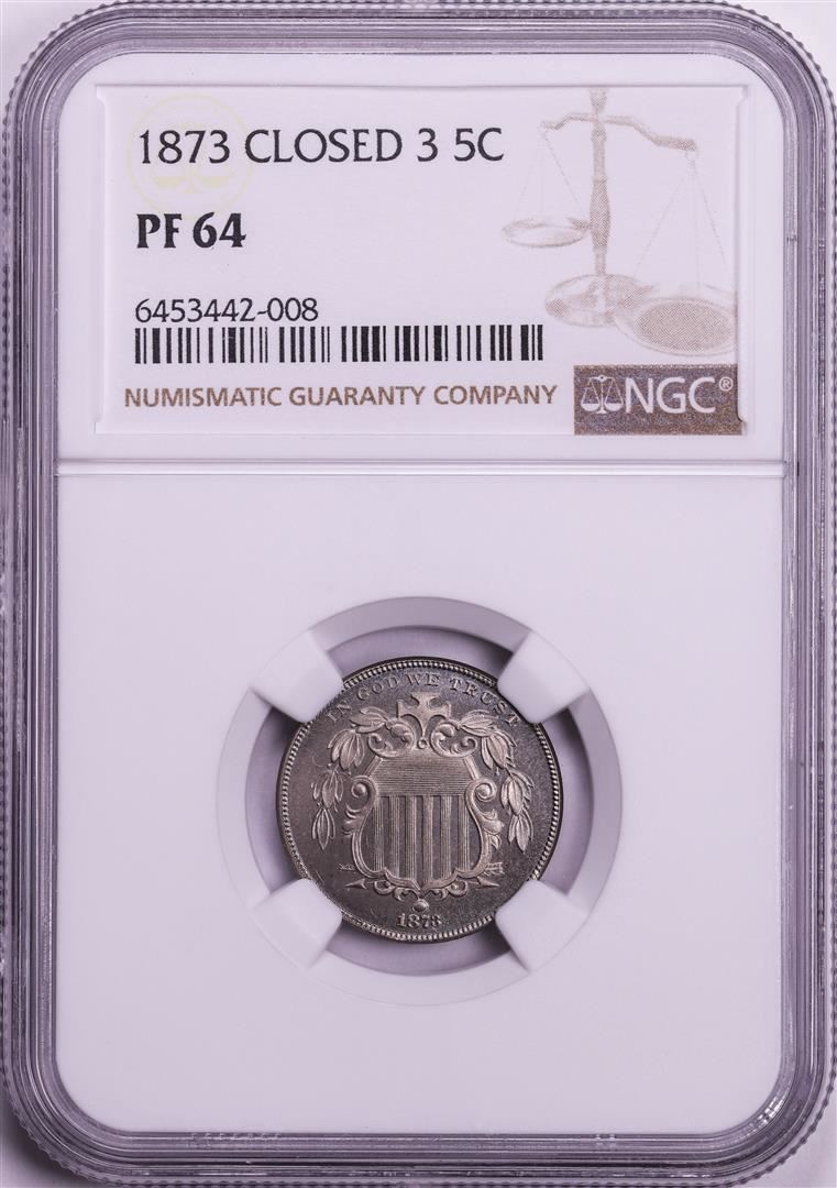 One 1873 Proof Shield Nickel Coin NGC PF64. NGC Certified.