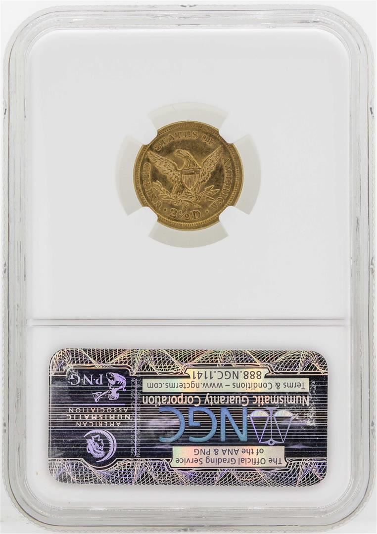 One 1873-S $2 1/2 Liberty Head Quarter Eagle Gold Coin NGC AU58. NGC Certified.