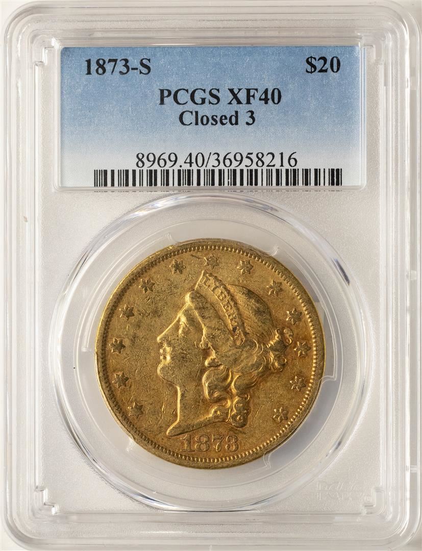 One 1873-S Closed 3 $20 Liberty Head Double Eagle Gold Coin PCGS XF40. PCGS Graded.