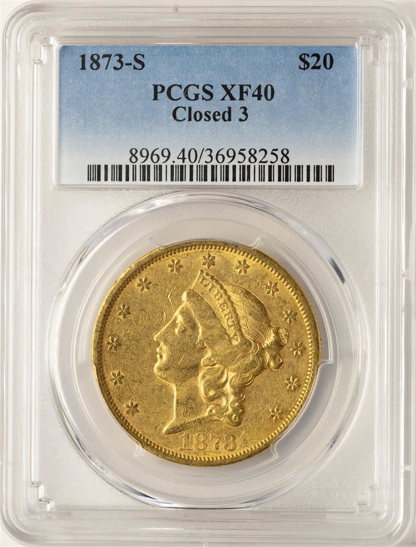 One 1873-S Closed 3 $20 Liberty Head Double Eagle Gold Coin PCGS XF40. PCGS Graded.