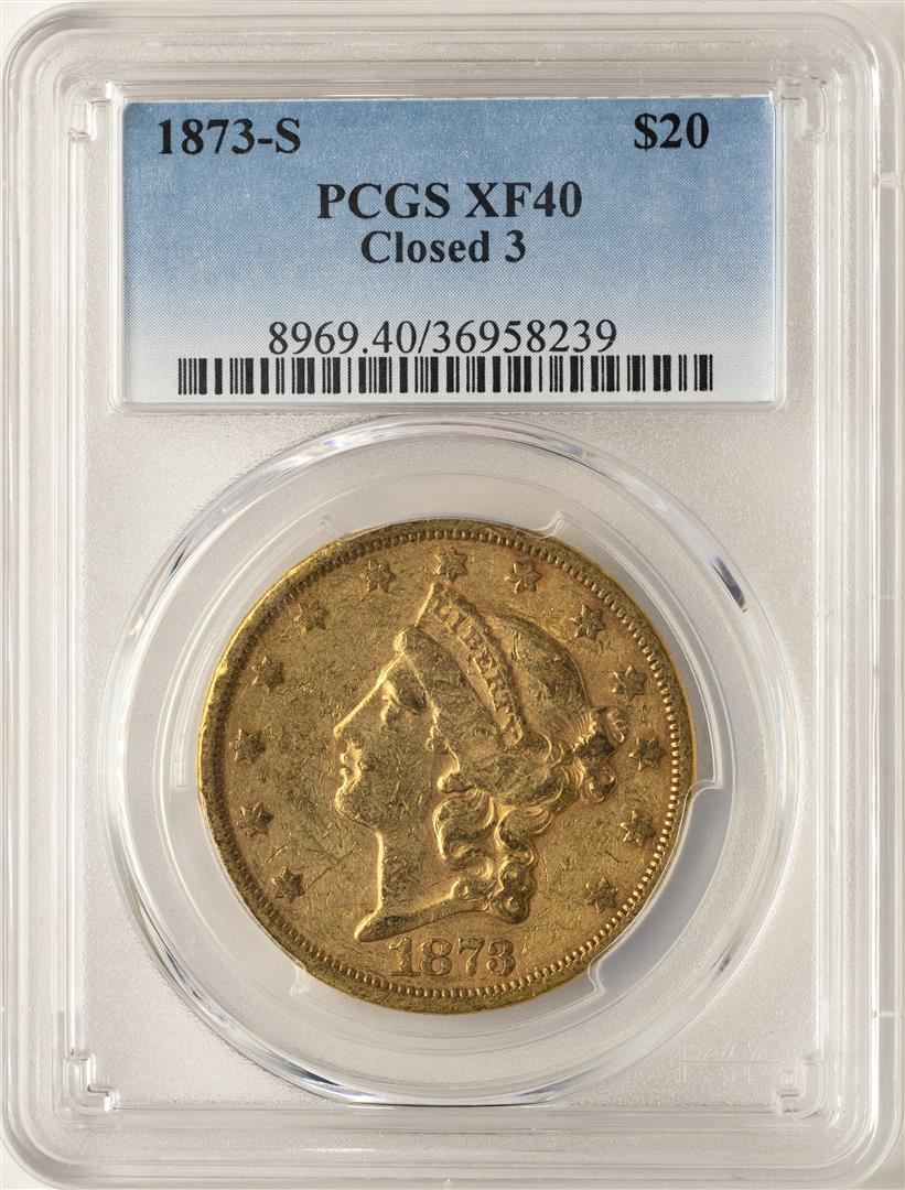 One 1873-S Closed 3 $20 Liberty Head Double Eagle Gold Coin PCGS XF40. PCGS Graded.