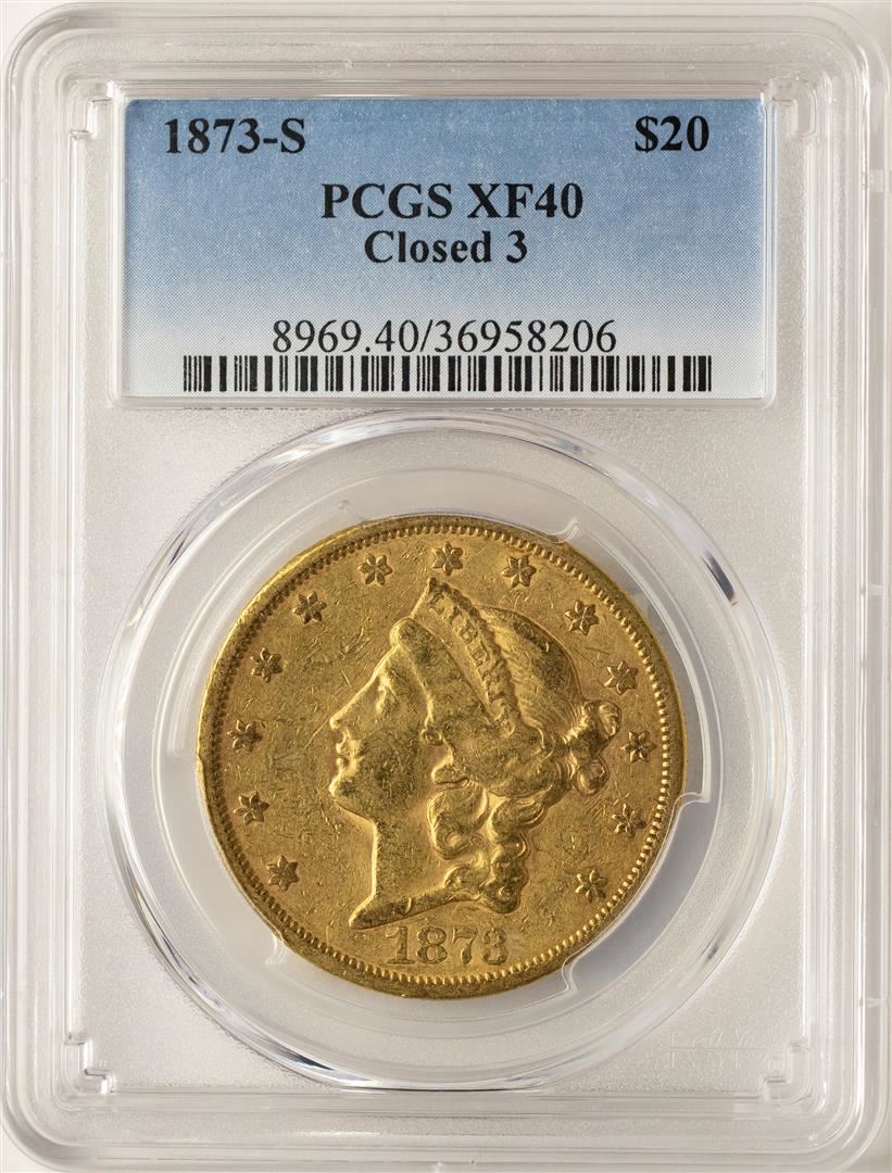 One 1873-S Closed 3 $20 Liberty Head Double Eagle Gold Coin PCGS XF40. PCGS Graded.