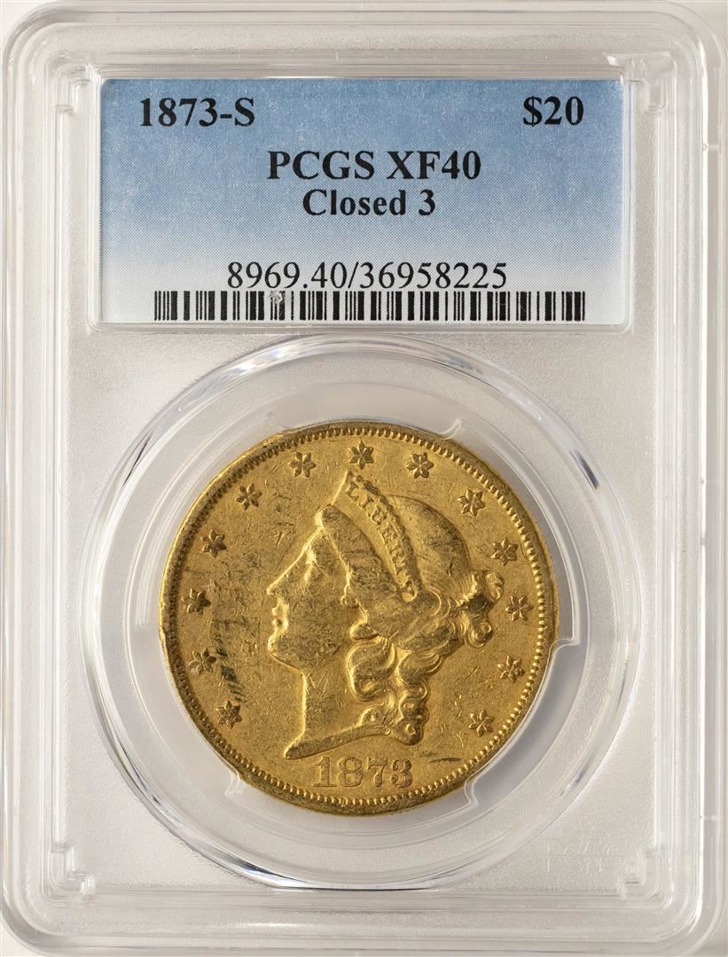 One 1873-S Closed 3 $20 Liberty Head Double Eagle Gold Coin PCGS XF40. PCGS Graded.