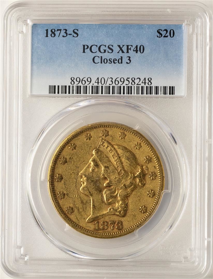One 1873-S Closed 3 $20 Liberty Head Double Eagle Gold Coin PCGS XF40. PCGS Graded.