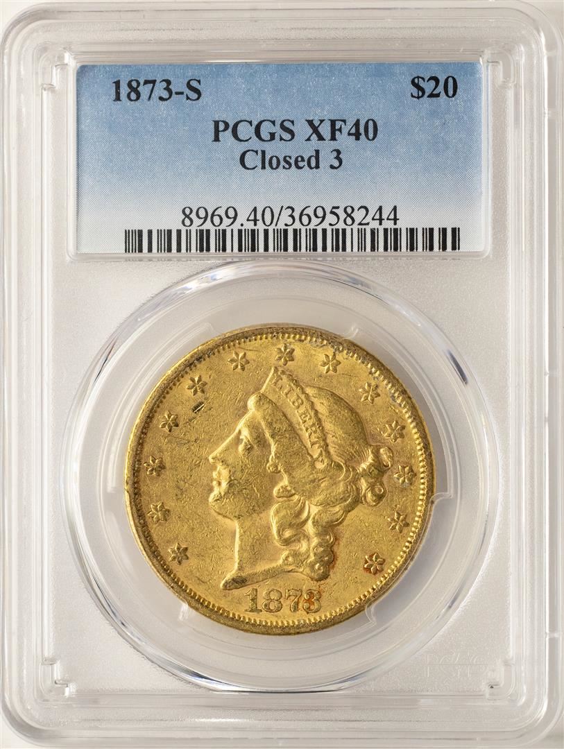 One 1873-S Closed 3 $20 Liberty Head Double Eagle Gold Coin PCGS XF40. PCGS Graded.