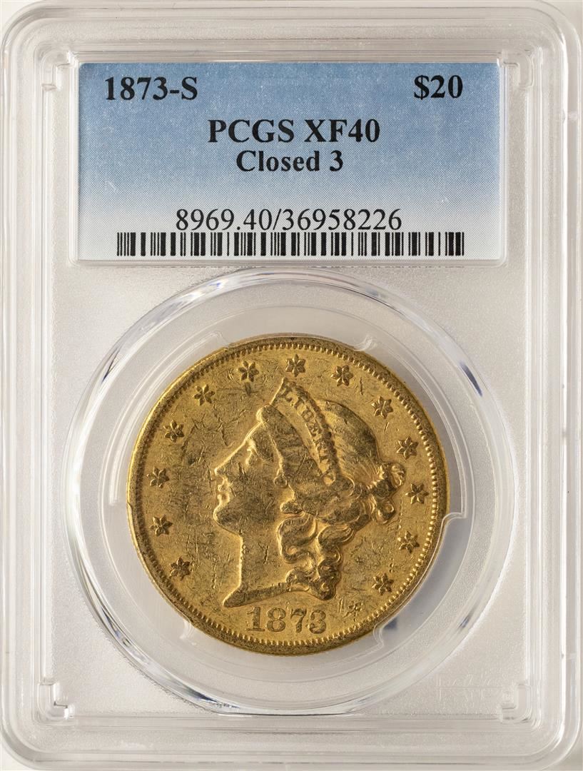 One 1873-S Closed 3 $20 Liberty Head Double Eagle Gold Coin PCGS XF40. PCGS Graded.