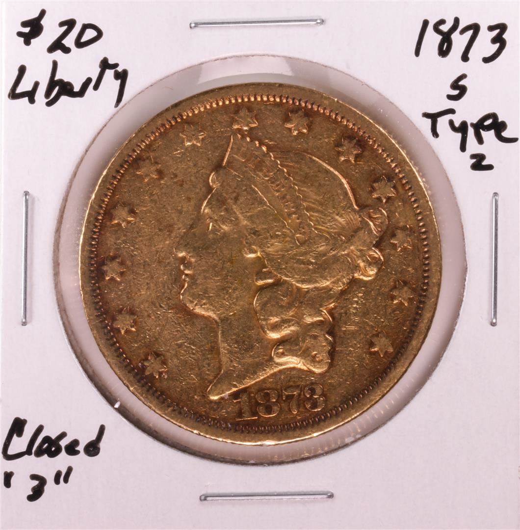 One 1873-S Closed 3 $20 Liberty Head Double Eagle Gold Coin.