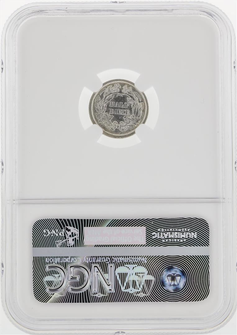 One 1873 Seated Liberty Half Dime Coin NGC AU55. NGC Certified.