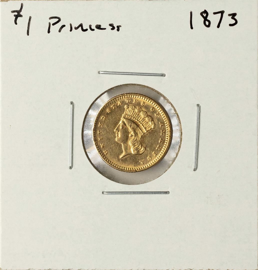 One 1873 Type 3 $1 Indian Princess Head Gold Dollar Coin.