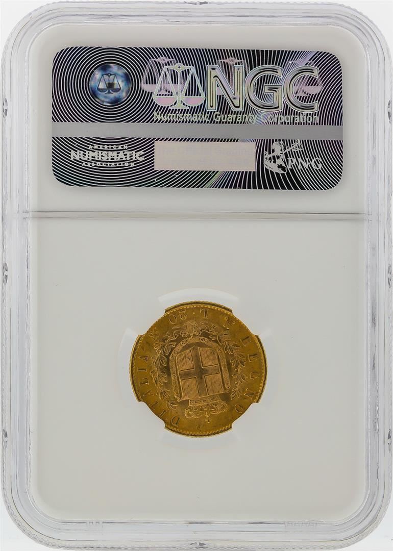 One 1873M BN Italy 20 Lire Gold Coin NGC Graded MS64. NGC Certified.