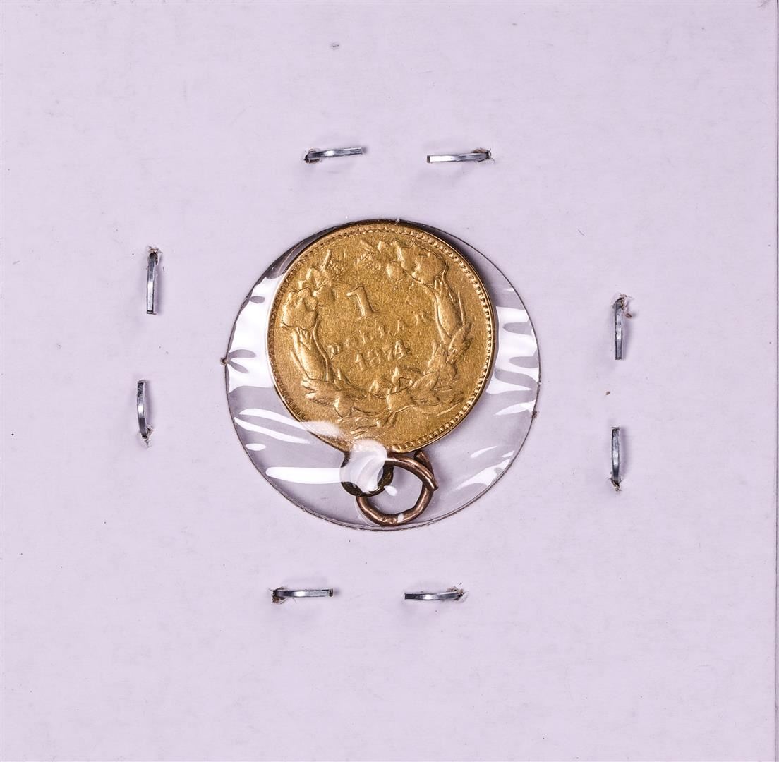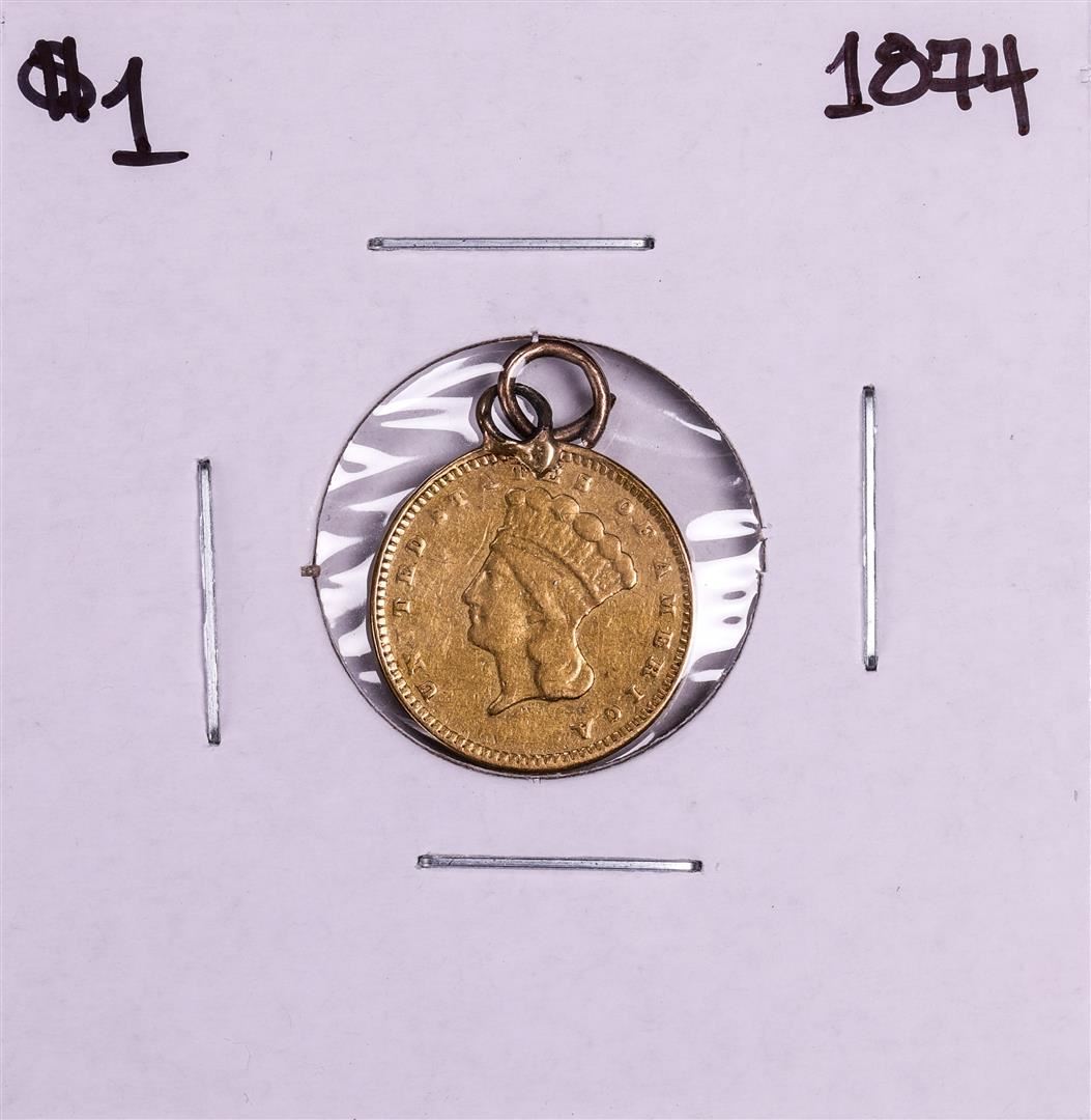 One 1874 $1 Indian Princess Head Gold Dollar Coin Pendant.