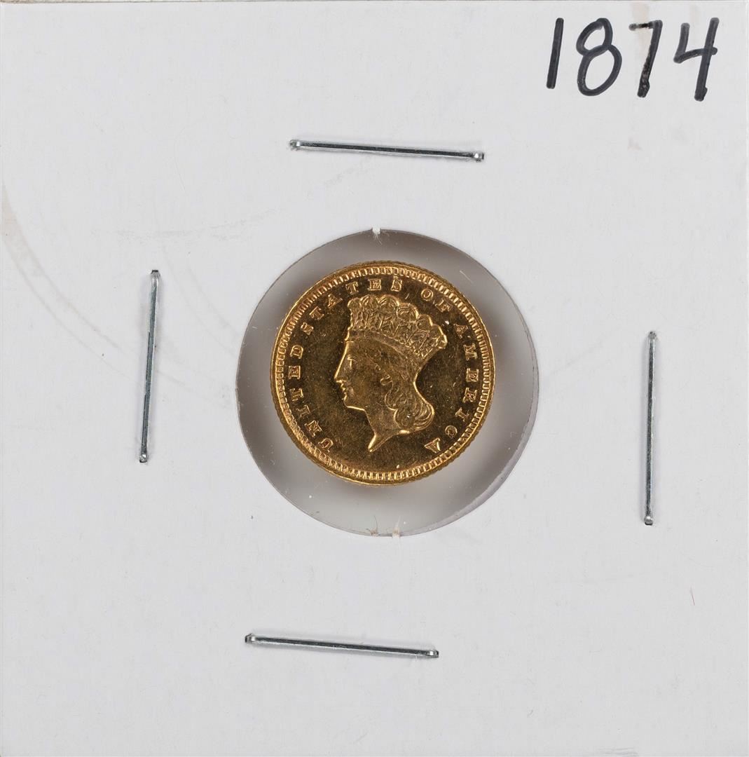 One 1874 $1 Indian Princess Head Gold Dollar Coin.